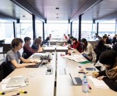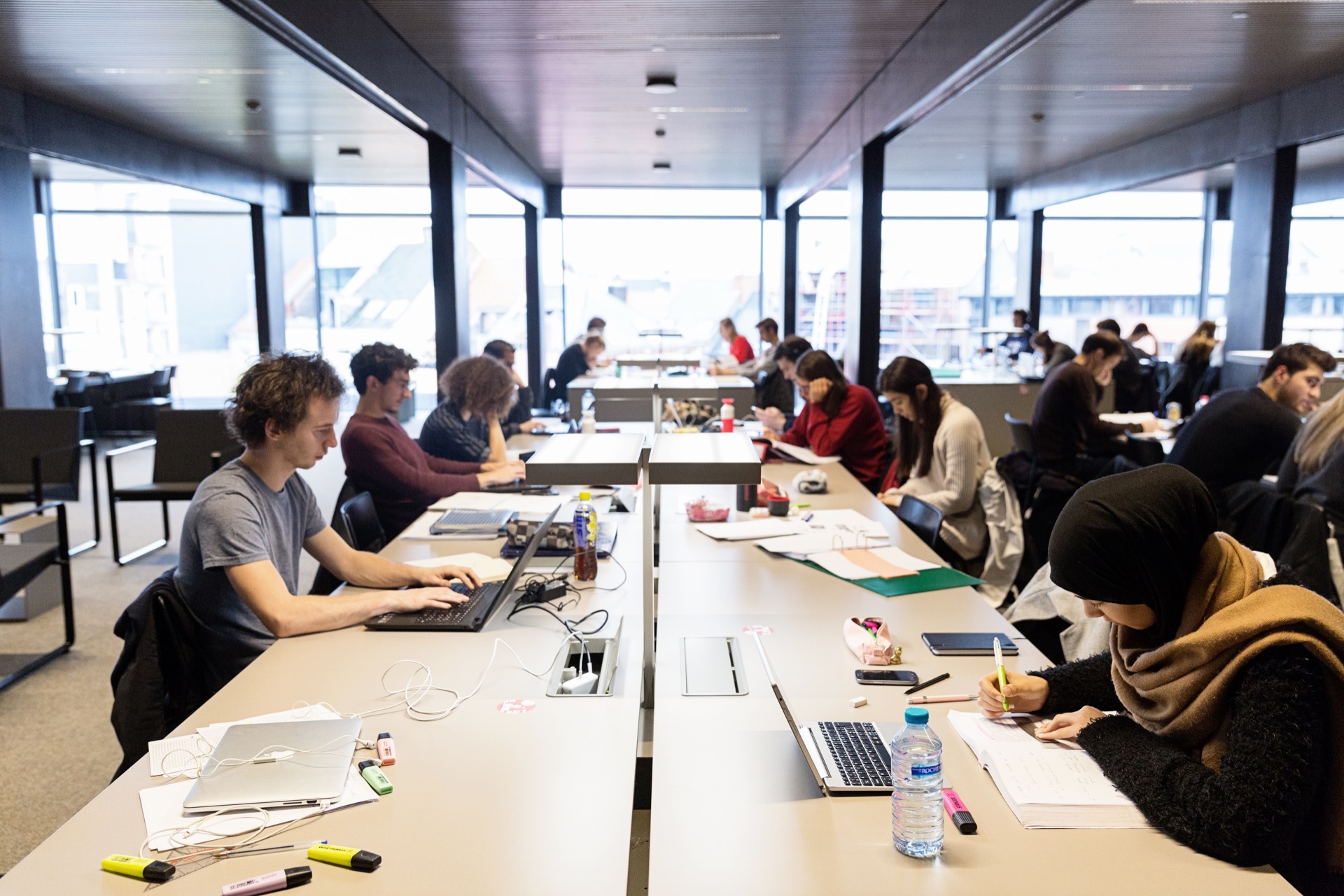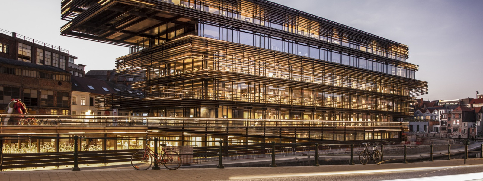 The visitor notices three dominant materials: steel, concrete and glass. The building is intended to function as Ghent’s living room. It can be read as a stack of horizontal plateaus overlooking the Scheldt river, intended to create a city within a city. Visual connections and meeting spaces highlight the public nature of the building, which welcomes its surroundings as a result. The building is therefore extremely transparent and open, allowing local residents to meet here once again and discover what this reclaimed location has to offer. The Krook serves a population of 270.000 inhabitants, with 170 different nationalities. There are more than 74.000 students.