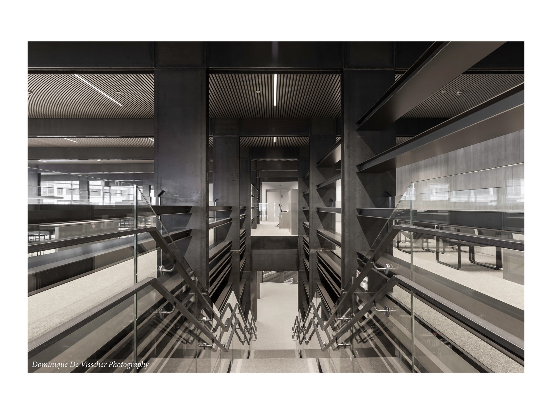 ‘This concept succeeds in creating the correct atmosphere that a Ghent library wants to evoke: serene, quiet, profound, respectful and yet very inviting. The right balance between action and calm, between noise and silence, between relaxation and concentration, between dynamism and seriousness… is achieved in this lyrical concept. This atypical concept certainly means an innovative architectural approach to the embodiment of the library as a social concept.’ (Jury design competition, 2010)