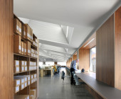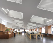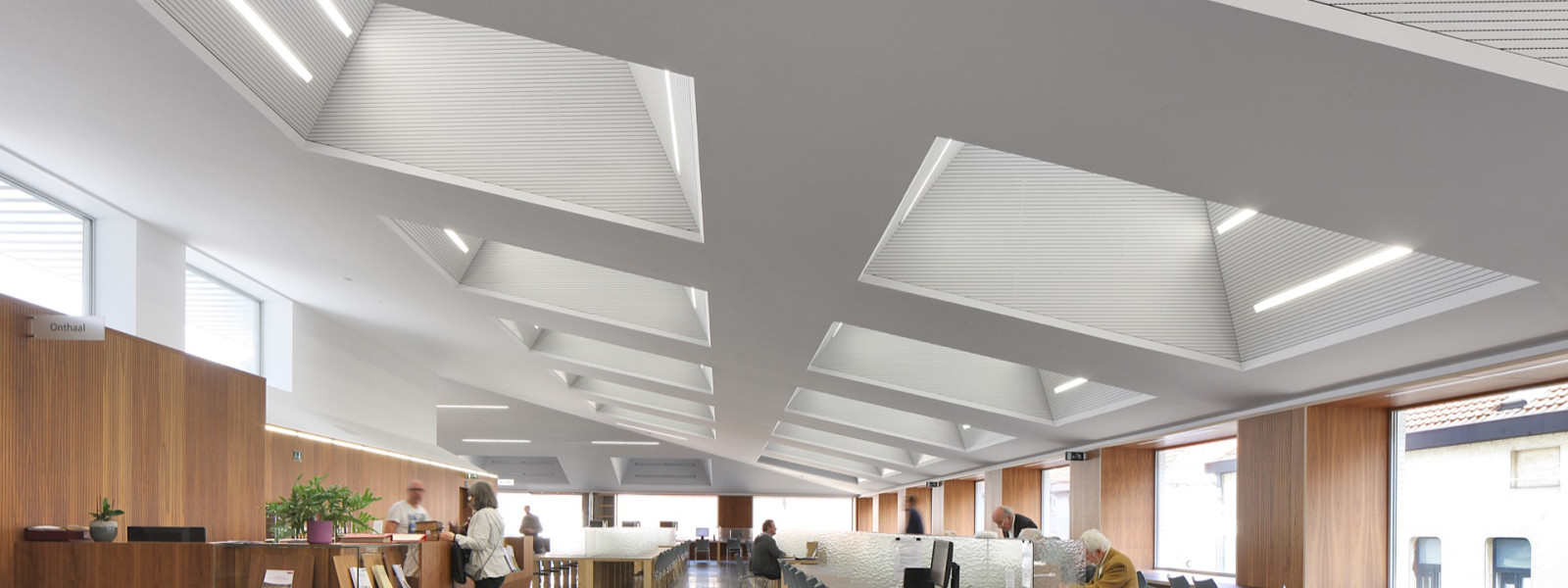 • Careful position of openings in facades and roofs with roof lights allowing for plenty of northern light to flood into the public areas