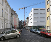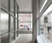 The new volume is meticulously matched to the scale of the surrounding buildings. This sturdy corner building keeps to the pattern of the street onto which it fronts, while the volume behind adheres to the cornice height of the surrounding streets and alleys. The glazed entrance is extended into a continuous transparent horizontal band that wraps around the building. Part of the archive is housed underground. This makes space available for a small public square at the back, in the midst of this dense 19th-century urban setting.