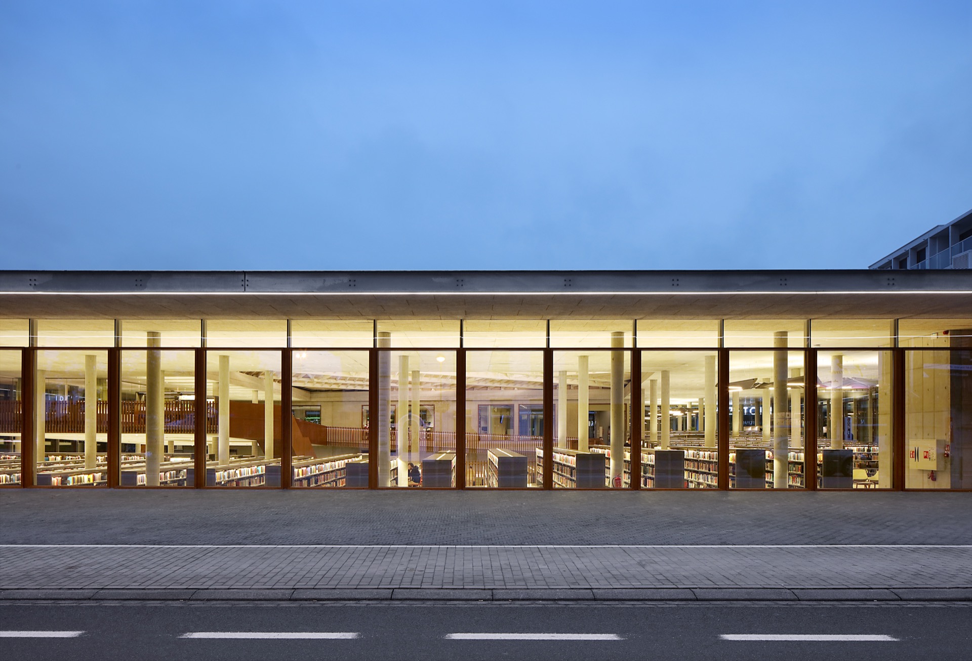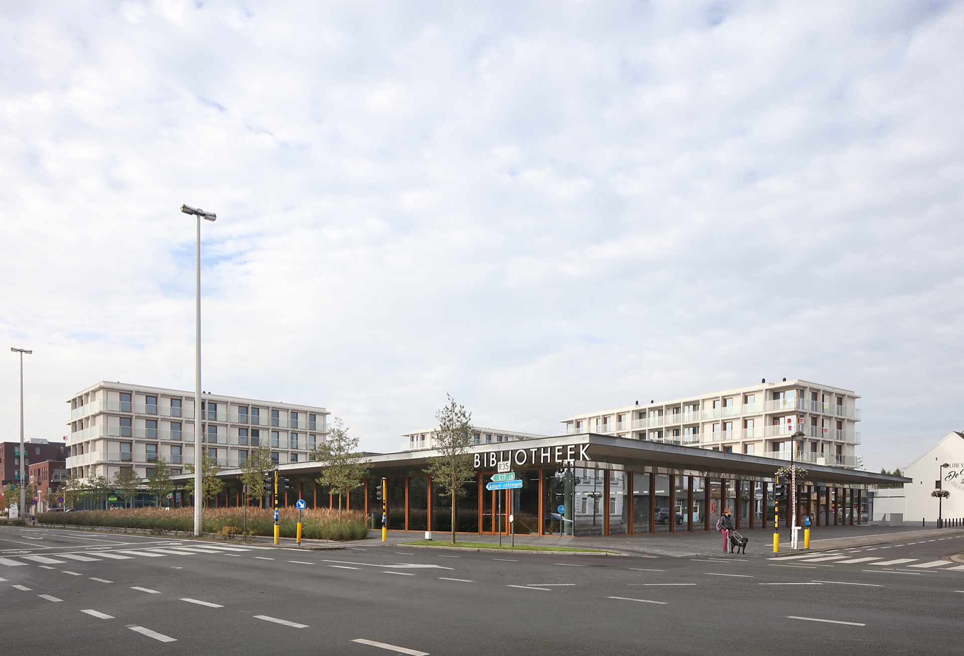By dividing the housing program into three smaller entities, the volumes receive more façade and the apartments more quality, views and light. An important characteristic of the new urban development plan is that no front or back side is to be created. The boulevard side is just as much a front side as the library side. The residential volumes are visible from the four compass points, which is why all facades are equally designed. The library is by far the most important building on the site.