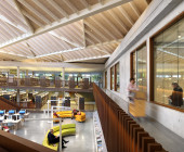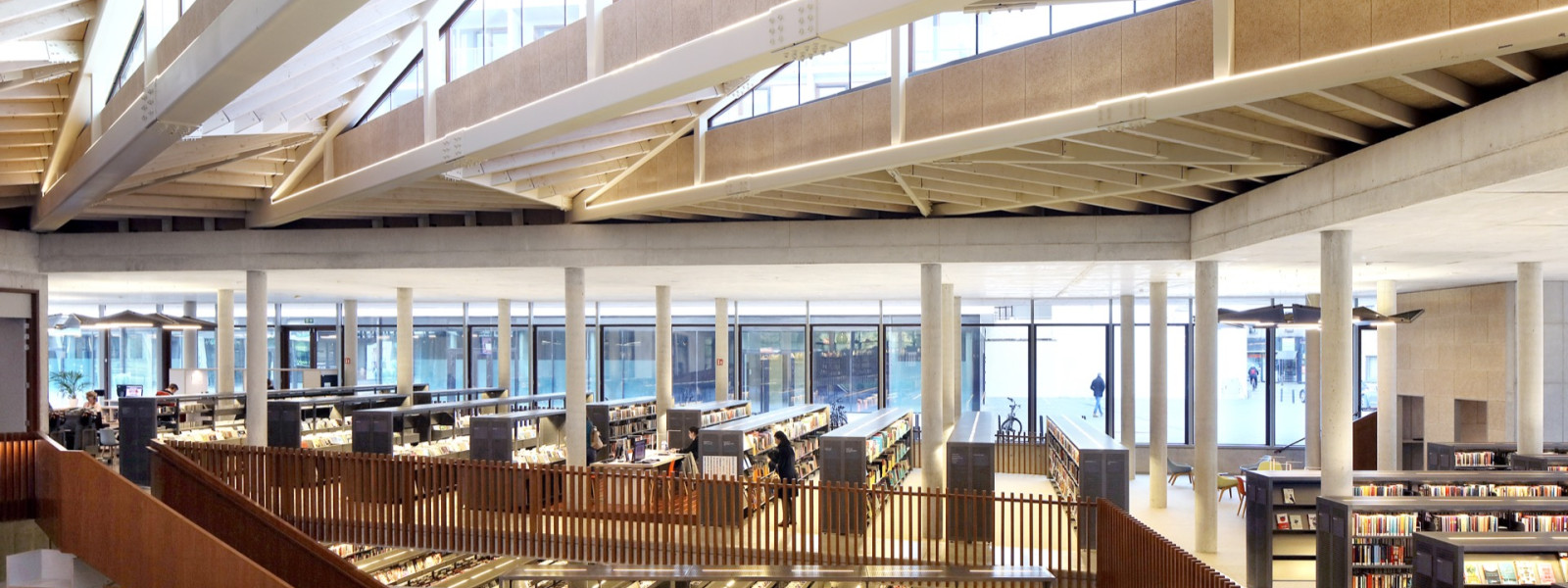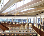 All departments, reading rooms and seating areas are organized on this sloping floor. For practical reasons, the reading rooms are housed on the flat corners of the promenade.