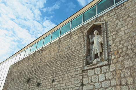 The building, constructed in the 1960s, is located at the outskirts of the historic Gothic-Renaissance city, is one of the most significant works of Croatian architecture of the second half of the last century. The architect, Ivan Vitić, who expresses himself in a reduced form of radicalism, skillfully used the city walls on which he “mounted” the building and contrasted the ethereal glass membrane of the building’s structure and particular roof facets that are actually a structural series of reinforced concrete creases of specific stability characteristics. For that particular period but even for present circumstances the extraordinary technical innovation enabled the securing of a flat roof surface to the airy glass membrane structure whose masse is transposed to the ground only by invisible props.