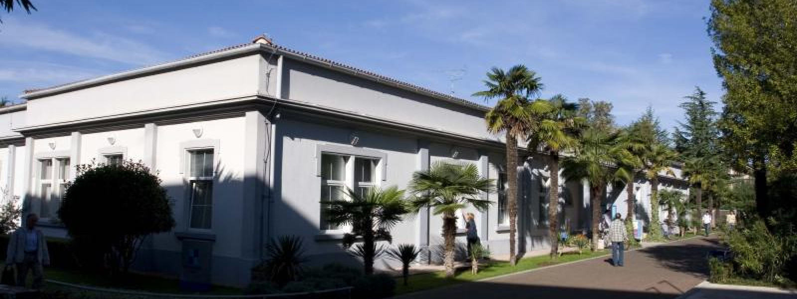 The Public Library is located in a three-wing ground-floor building build as an officer’s club within the complex of the Italian military barracks (around 1928). It served a similar function up to the Homeland War as a Cadet Club within the artillery school centre of the former YPA. The design of the building is low-profile and neutral but exceptionally ready-made in the spirit of the standard Italian military architecture of the late 1920s as can be seen in many Italian cities. The designers who renovated the space for the needs of the Public Library connected the two side wings of the buildings with a glass corridor that has in its centre a small glassed-in transparent pavilion – cafeteria. In this way the thus formed inner courtyard with a summer café has been transformed into a suitable space for other open-door activities.