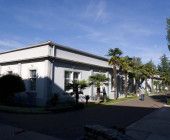 The building is of a grey-bluish colour which intentionally underlines its reduced classicist aspect.