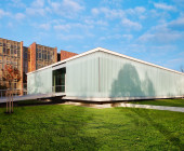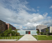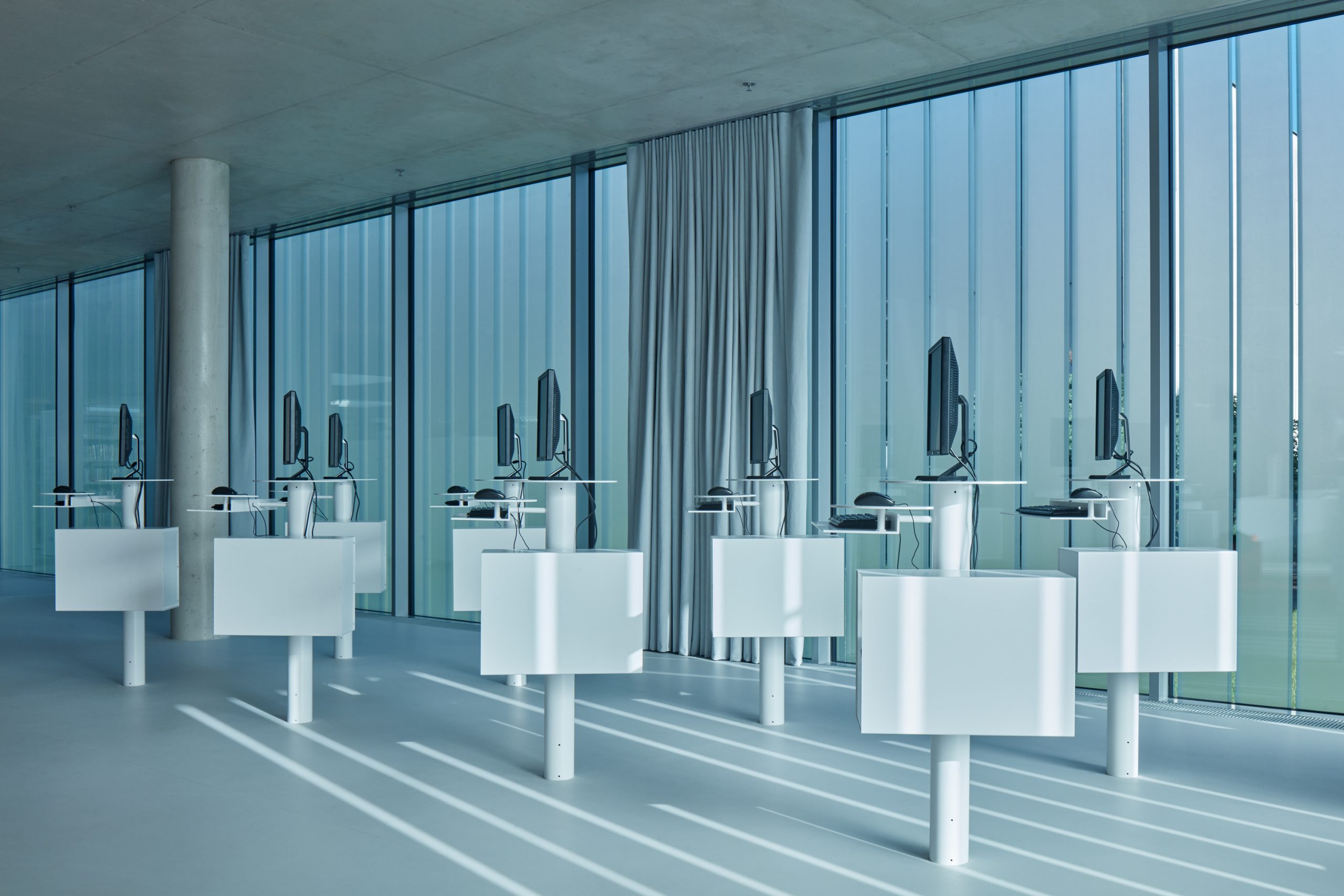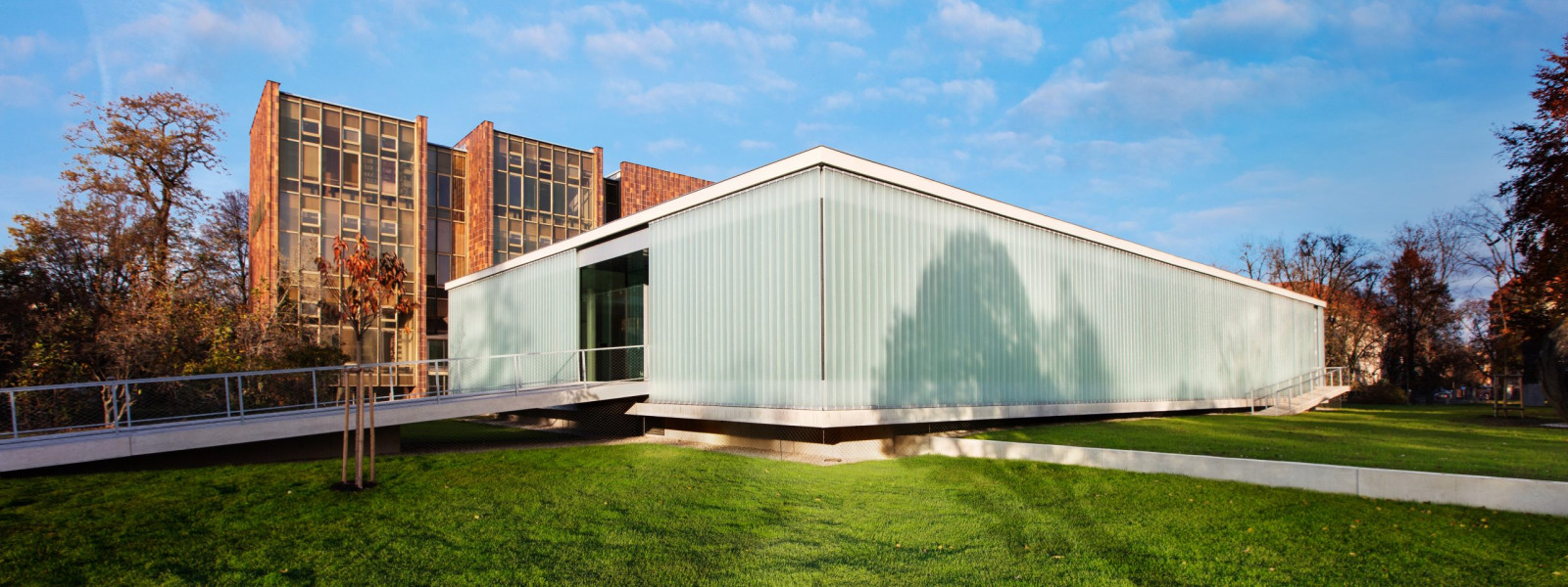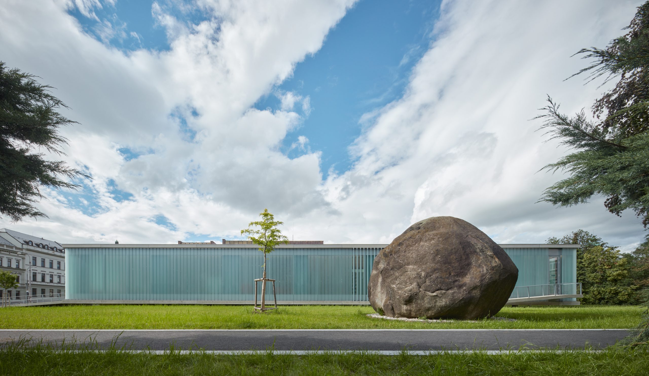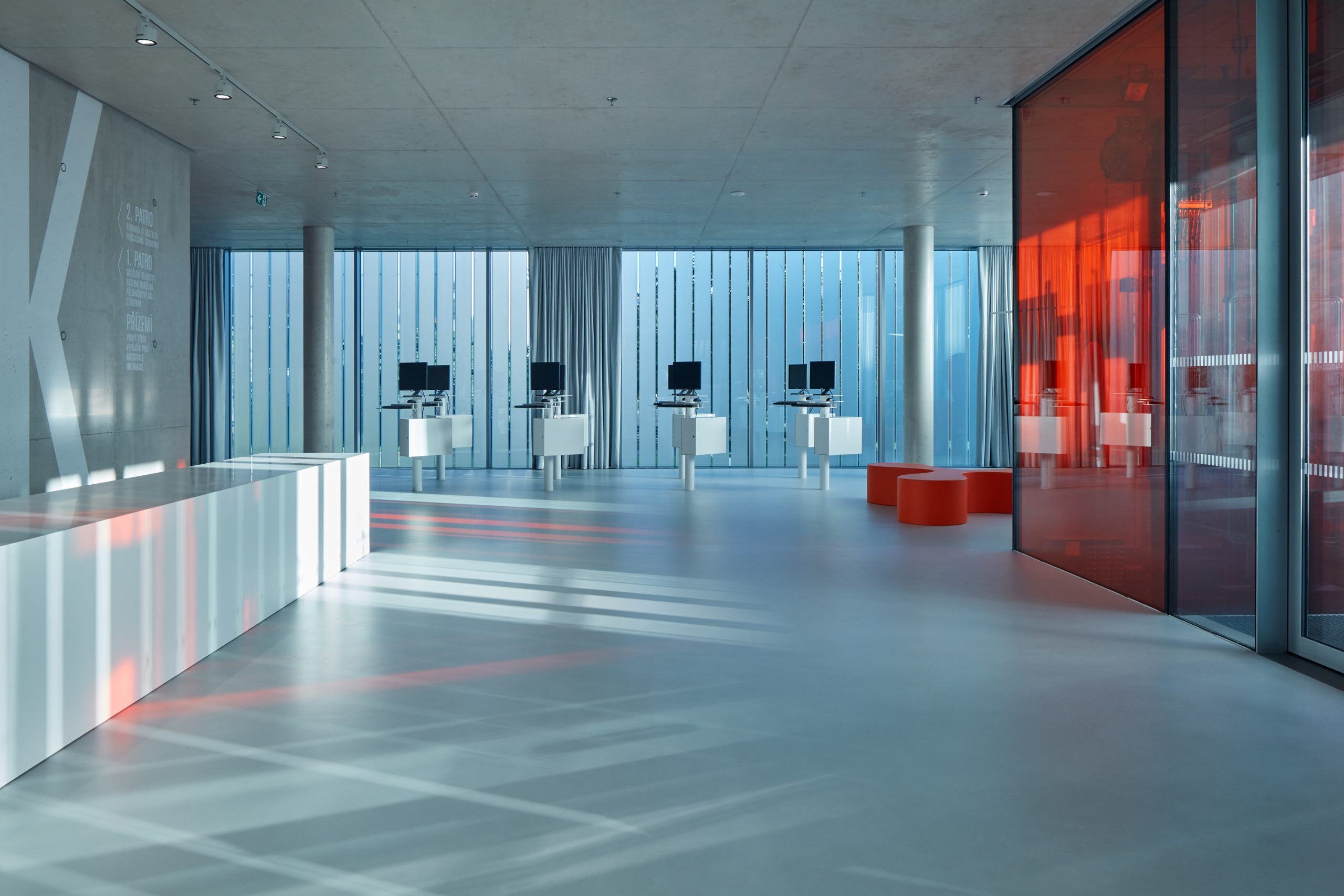 The intention of the project was to create a space for free choice by combining the newly built extension and the reconstructed 1st above-ground floor of the existing building. The winning design emerged from an architectural competition and, in addition to the requirements of library operation, had to be based on the conditions of historic preservation, the building is located in the protection zone of the city’s historic preservation. The winning proposal included an extension in the form of a “levitating” one-story addition, which is connected to the original building only at the point of the former entrance.