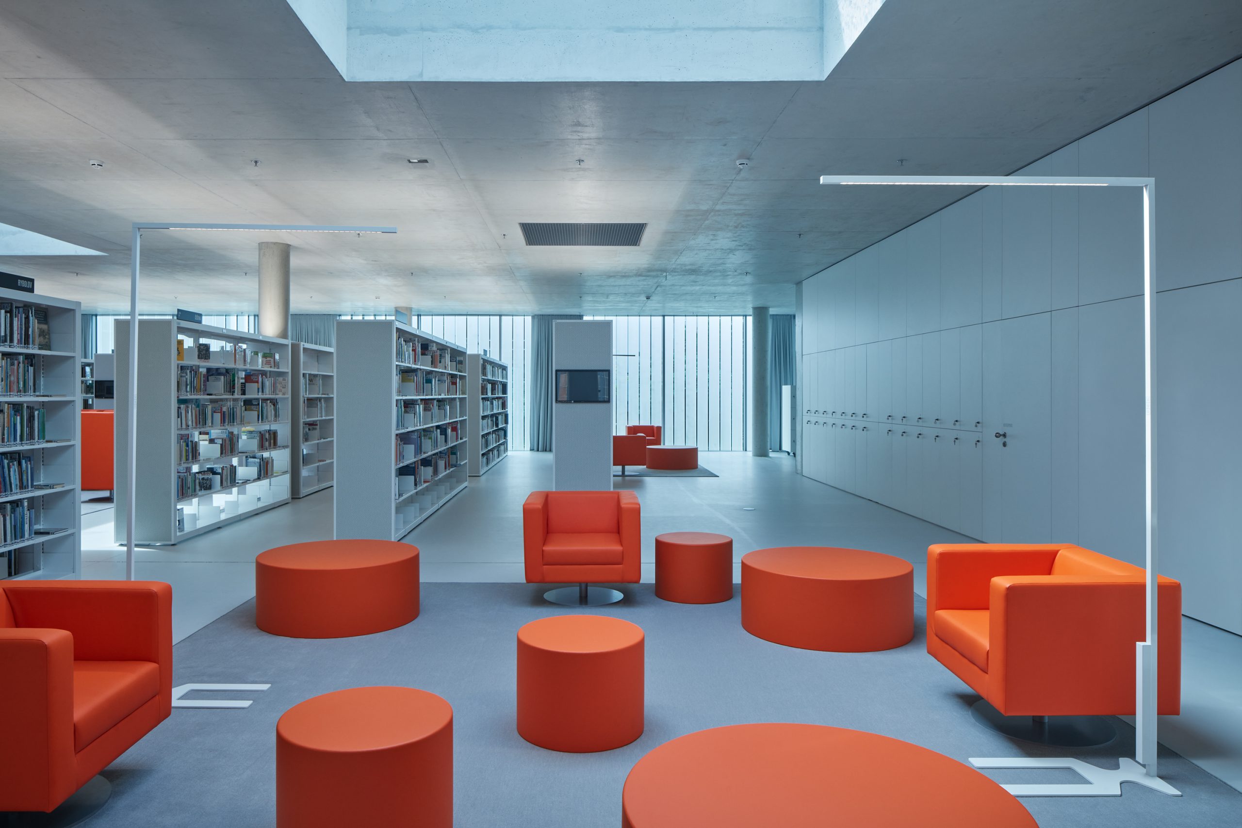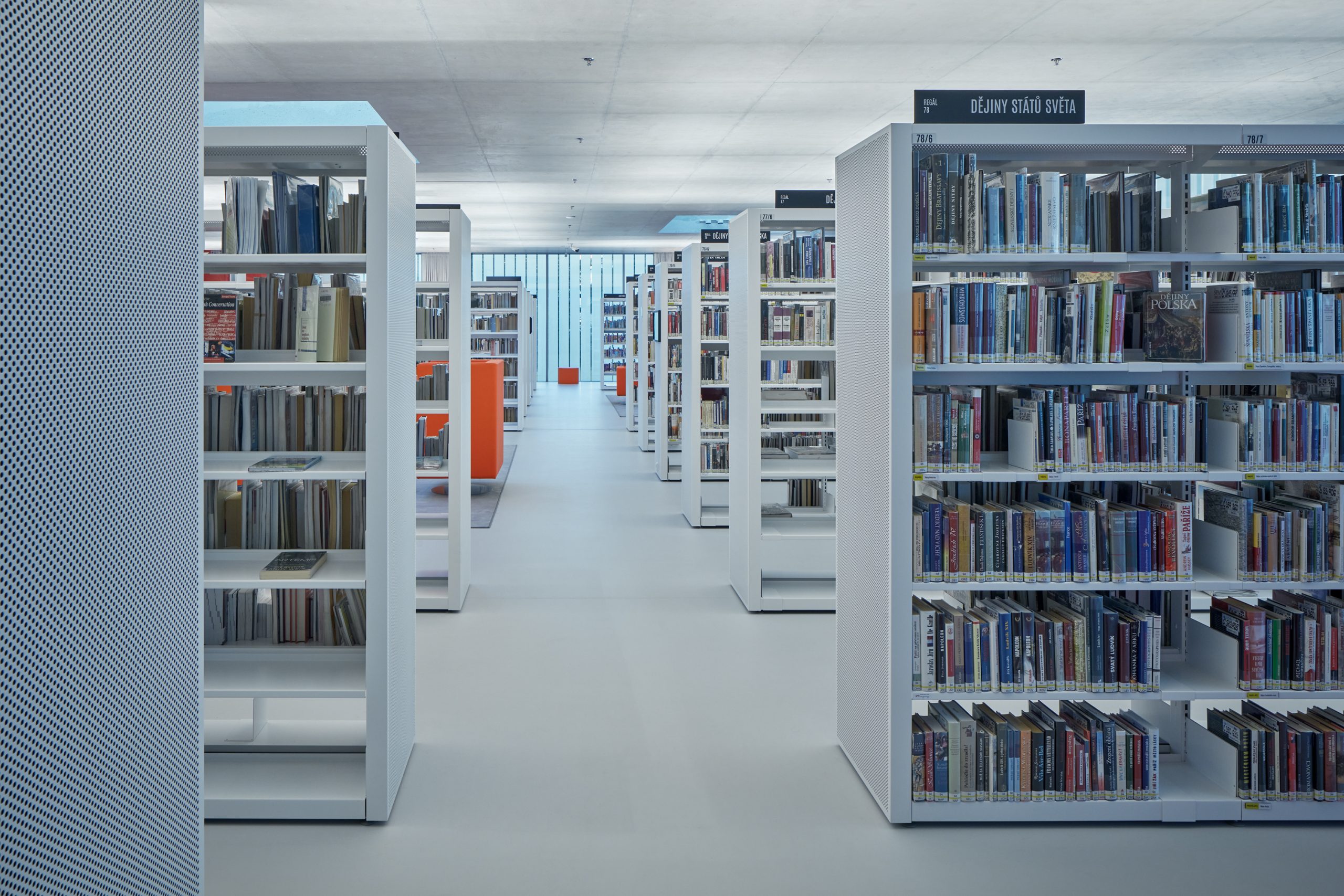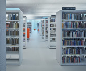 Mobile shelving in one of the halls, which will enable quick conversion to a lecture or concert hall