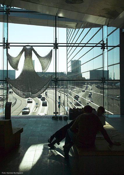 The name refers to the prismatic sharp edges and the black marble plates and glass of the exterior, that reflects the water of the harbour. Also from the wave-like balconies of central foyer, that cuts into the building as an 24 meter high atrium, there is a panoramic view over the harbour. The variety of cultural activities of the new building has turned The Royal Library into a central cultural centre of Copenhagen as part of the harbour promenade.