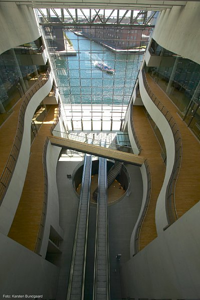 The “Black Diamond” is a characteristic new library building at the waterfront of Copenhagen. The building from 1999 is designed by the Danish architects Schmidt, Hammer and Lassen as an extension of The Royal Library and lies adjacent to the old library cathedral of Hans J. Holm from 1906. However, in form and materials it strikingly contrasts the old library building.