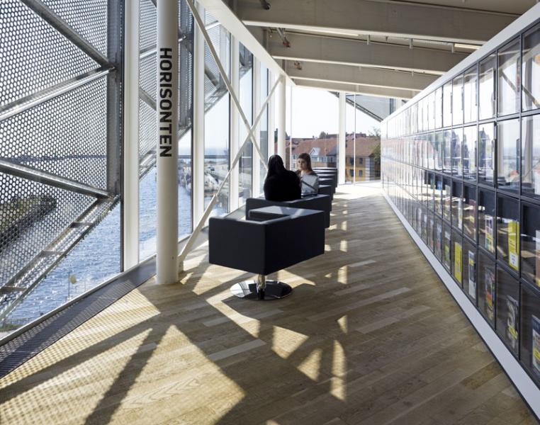 The Library itself is 6.000 m2 The Culture Yard symbolizes Elsinore’s transformation from an old industrial town to a modern cultural hub. In this way, the yard is designed as a hinge between the past and present, reinforcing the identity of the local community, but at the same time expressing an international attitude, reinforcing the relation between the local and global community.