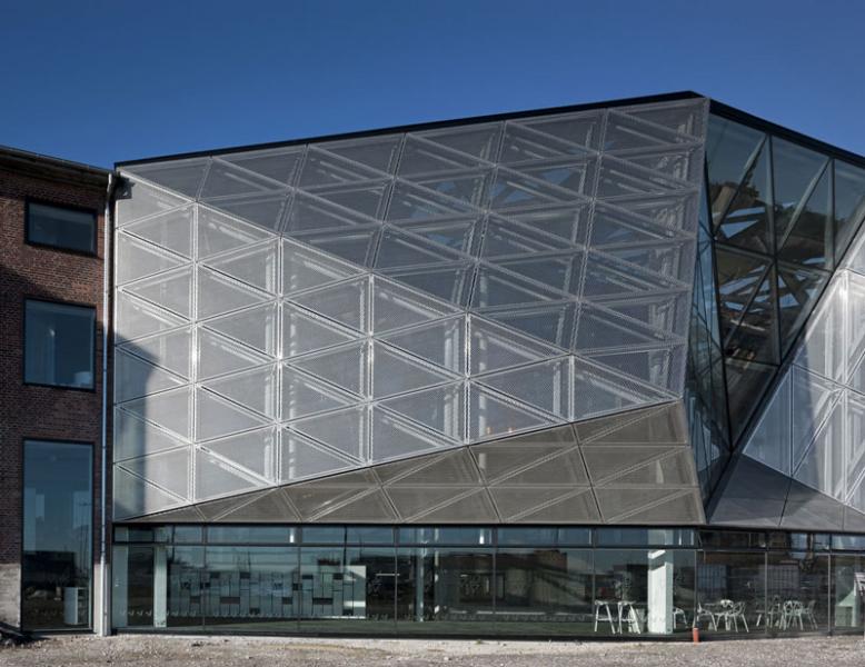Particularly striking, when viewed from the seafront and Kronborg Castle, is the multifaceted façade. Like a fragmented, yet strongly coherent structure, the enormous glass and steel façade challenges the historic site and stares unflinchingly across the Sound – the strait that separates Denmark and Sweden. The transparent façade also reinforces the relation between inside and outside, as you can peak in from street level and enjoy the magnificent sea view and view of Kronborg Castle from every floor of the building, especially from the glass cave which in a dramatic gesture protrudes out of the building above the main entrance.