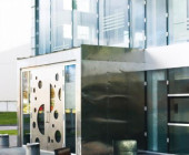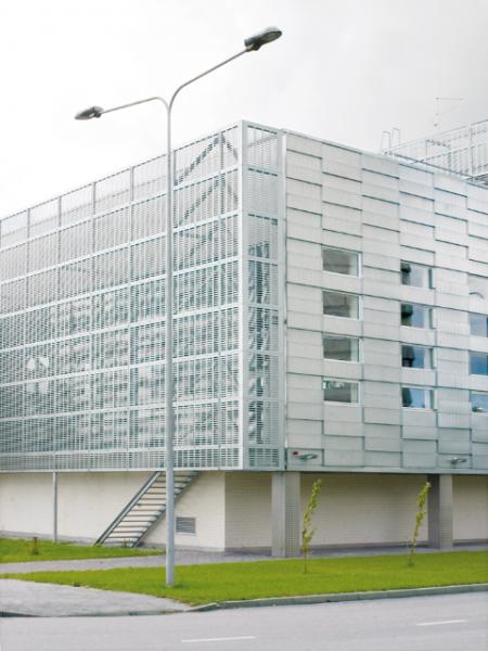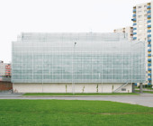 In the elaboration of the building he used veneer, metal, concrete and glass as a collage. The outer shell of the building is like a porous sponge that imbibes the light in the day to irradiate it in the dark.