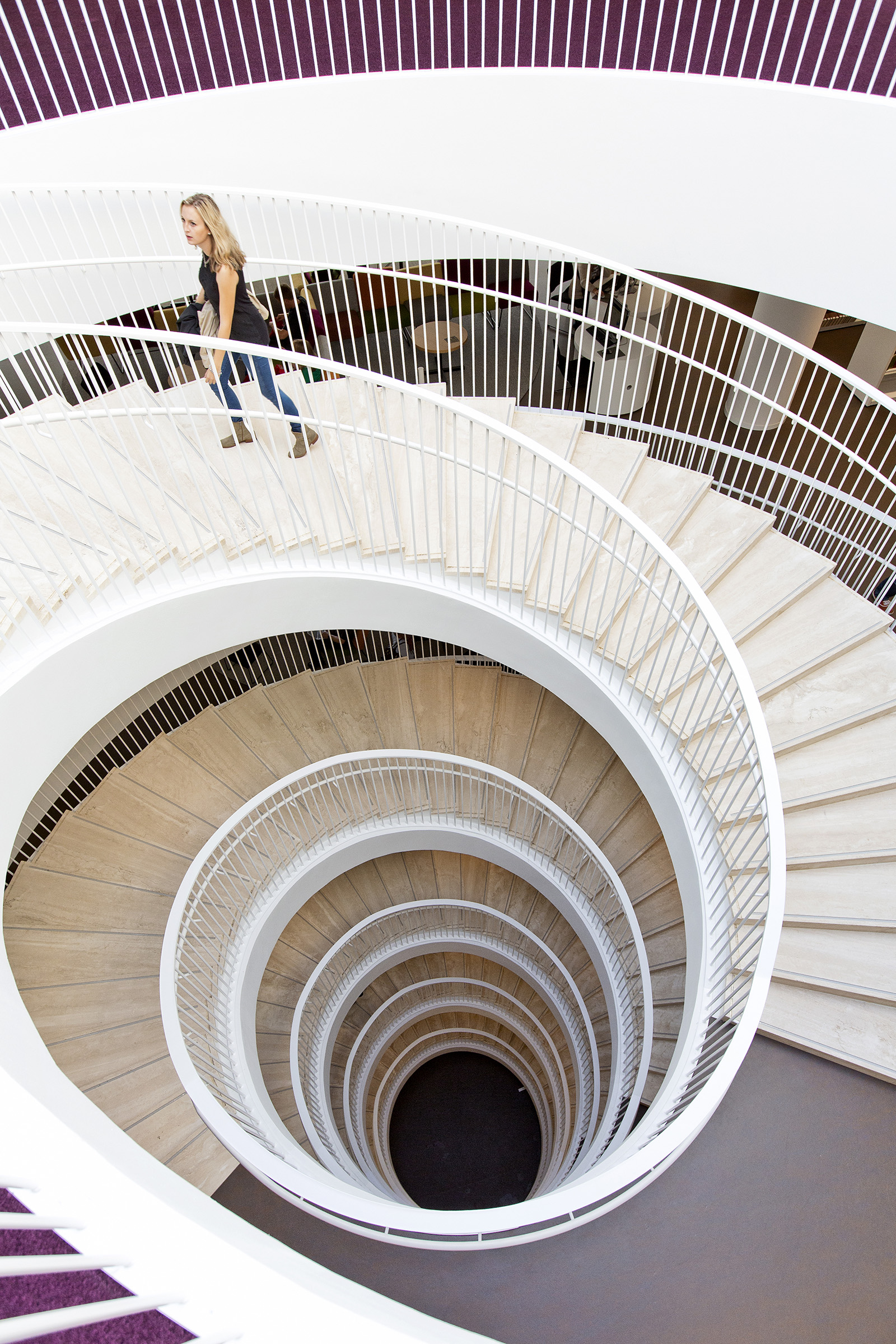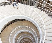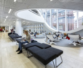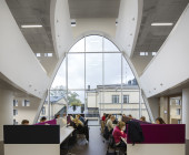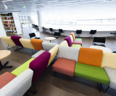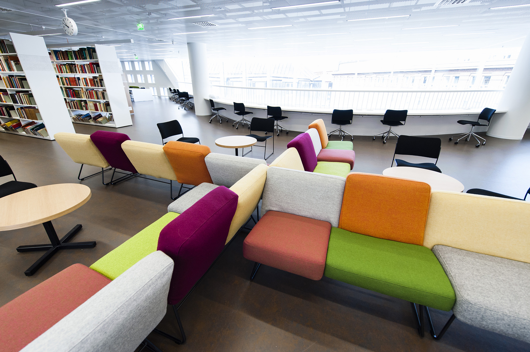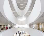 The ground plan is based on clear, flexible floor levels. The facilities have been divided into functional zones, and these spaces are encircled by walkways and the information zone, which in turn is surrounded by zone containing the collections. A soundproofed working zone provides different spaces for quiet reading and group rooms. Colourful furnishing defines the different areas, creating a contrast with the light interior architecture.