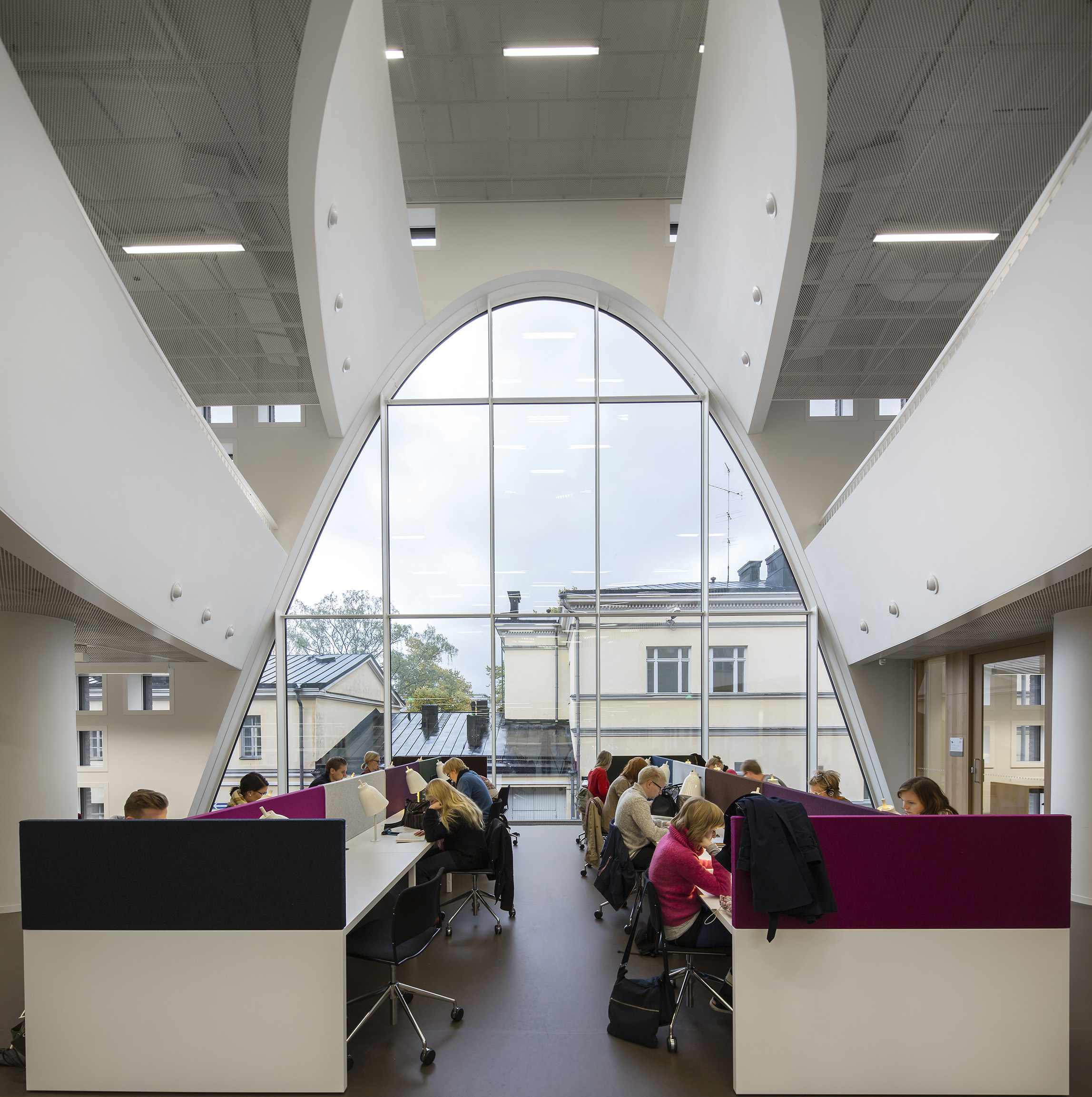 The Helsinki University Main Library represents state-of-the-art library architecture. As the biggest university library in Finland, the Helsinki University Library serves the academic community as a modern learning and research centre and offers a meeting place for all citizens. An architectural competition of the Main Library building was carried out in 2007 and 2008, and the winning entry was Avaus (Opening) by architects Anttinen Oiva Arkkitehdit Oy. The new Main Library building, called Kaisa House, was inaugurated in September 2012.