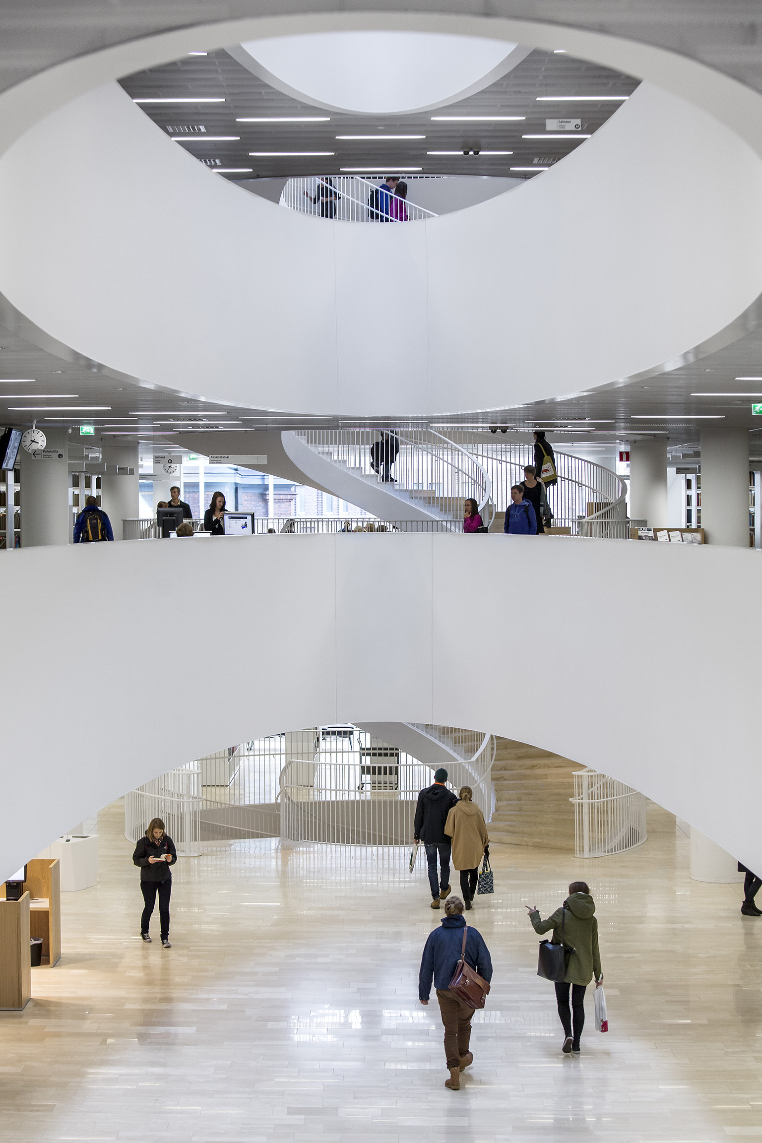 Recommended readings: Finnish Architecture with an Edge, text by Tarja Nurmi, photos by Kari Palsila, published 2013 in Helsinki by Maahenki. The book introduces contemporary Finnish architecture and the building of the Helsinki University Main Library is included.