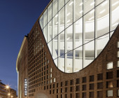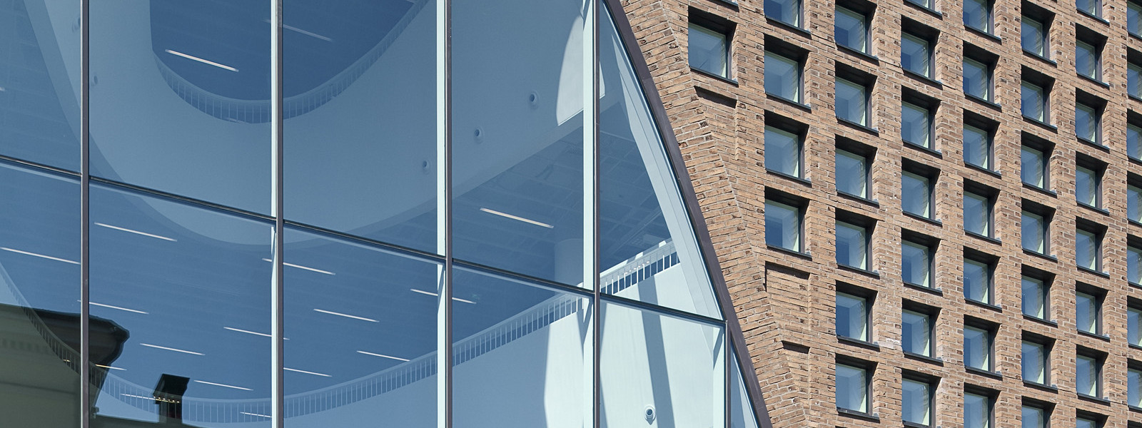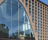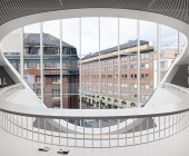 According to architect Vesa Oiva, the starting point, which the cityscape taken into consideration, was a vision of a unique building that suits its surroundings in terms of its materials, design and height. The design of the interior is based on an aligned series of openings in the ceilings and along the street front. The large arched windows allow spectacular views of the cityscape from inside the building. Three distinct apertures and the main staircase form a series of spaces that serve as a basis for the ambience of the interior, the functional zones, and the architecture of the façade. The architectural concept of the façade directly reflects the functional solutions of the interior.