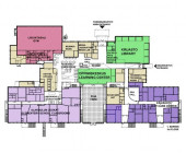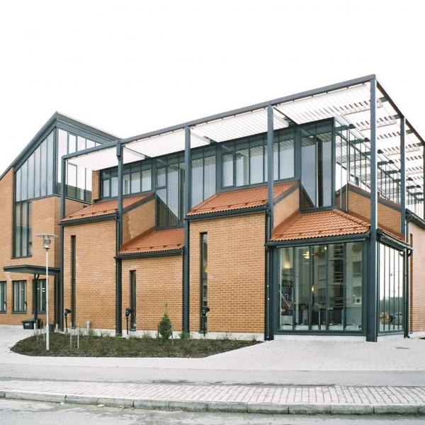 The Centre is located along Hagelstamintie and the library is like a crown in the street crossing. There is many lodges for different learning purposes and exhibitions in the library. The chapes of the lodges make the architectural idea of the library.