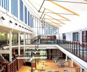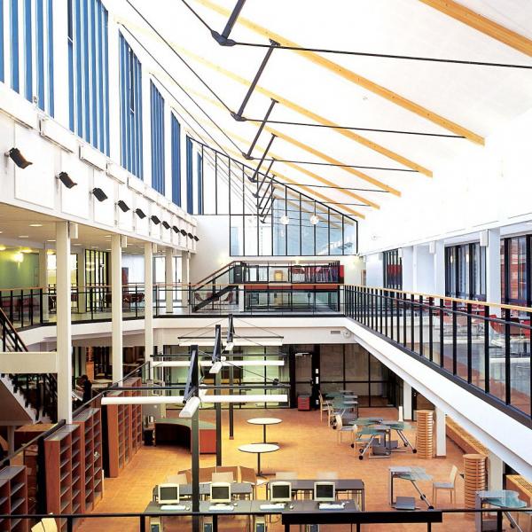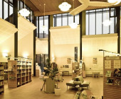 The Pakkala Learning and Information Centre consists of the International School of Vantaa, Day Care Centre, Pakkala Citizen’s Office and Point Library. The heart of the school is the Learning Centre, which is also open to the library users after school hours. The building is like a four leafed clover in which the library is one leaf.