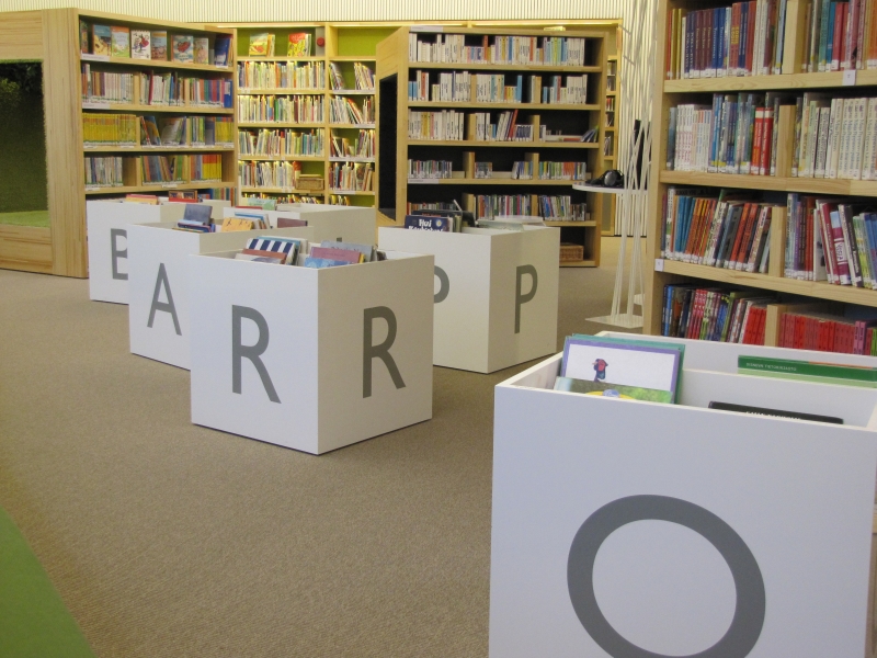The interior design is by interior decorator Päivi Meuronen. Her touch can be seen everywhere in the library: she has designed the fittings and chosen the furniture. Many items have been designed especially for this library. Päivi Meuronen has for example designed the book shelves and book houses.