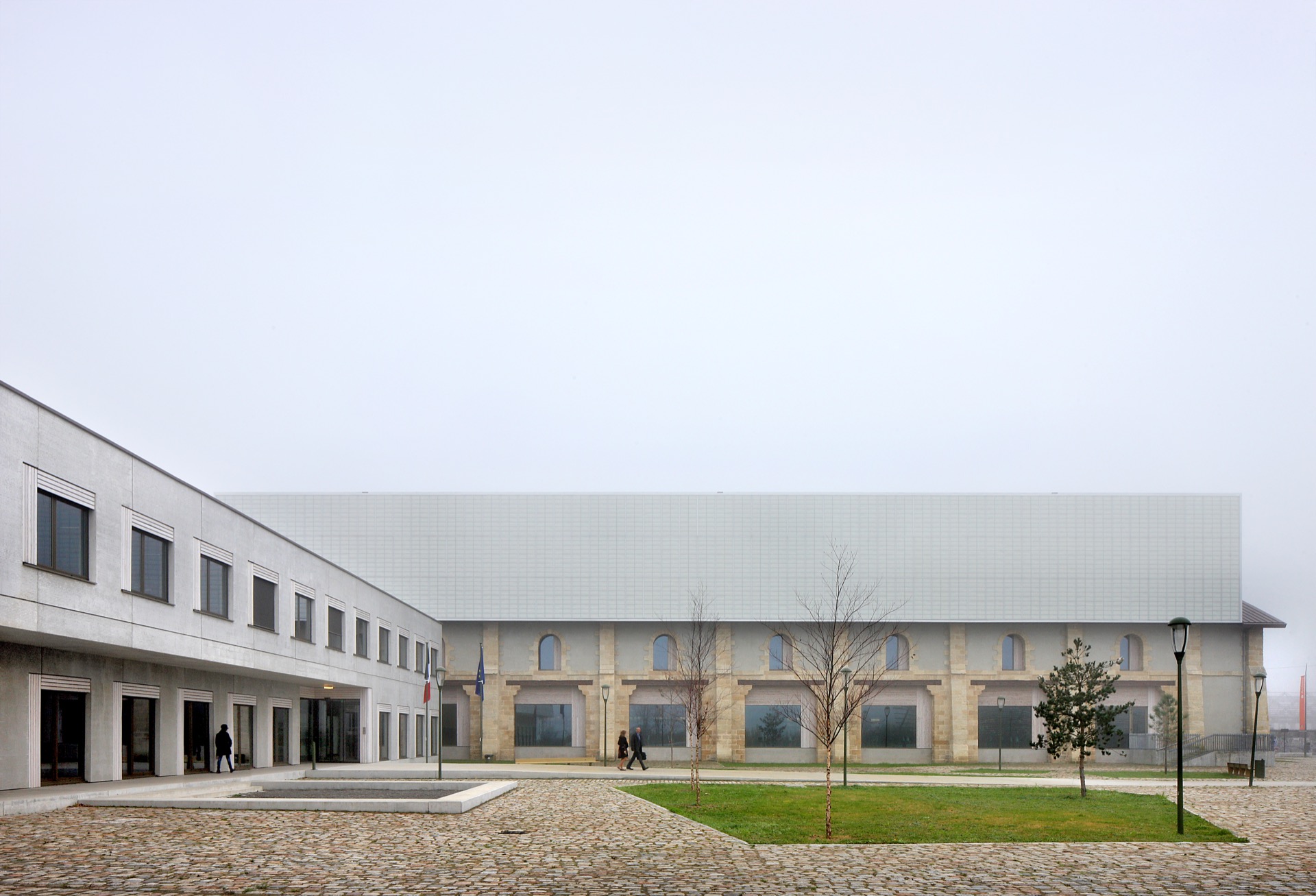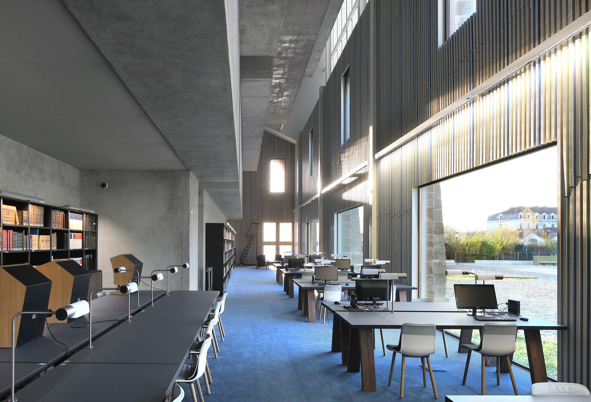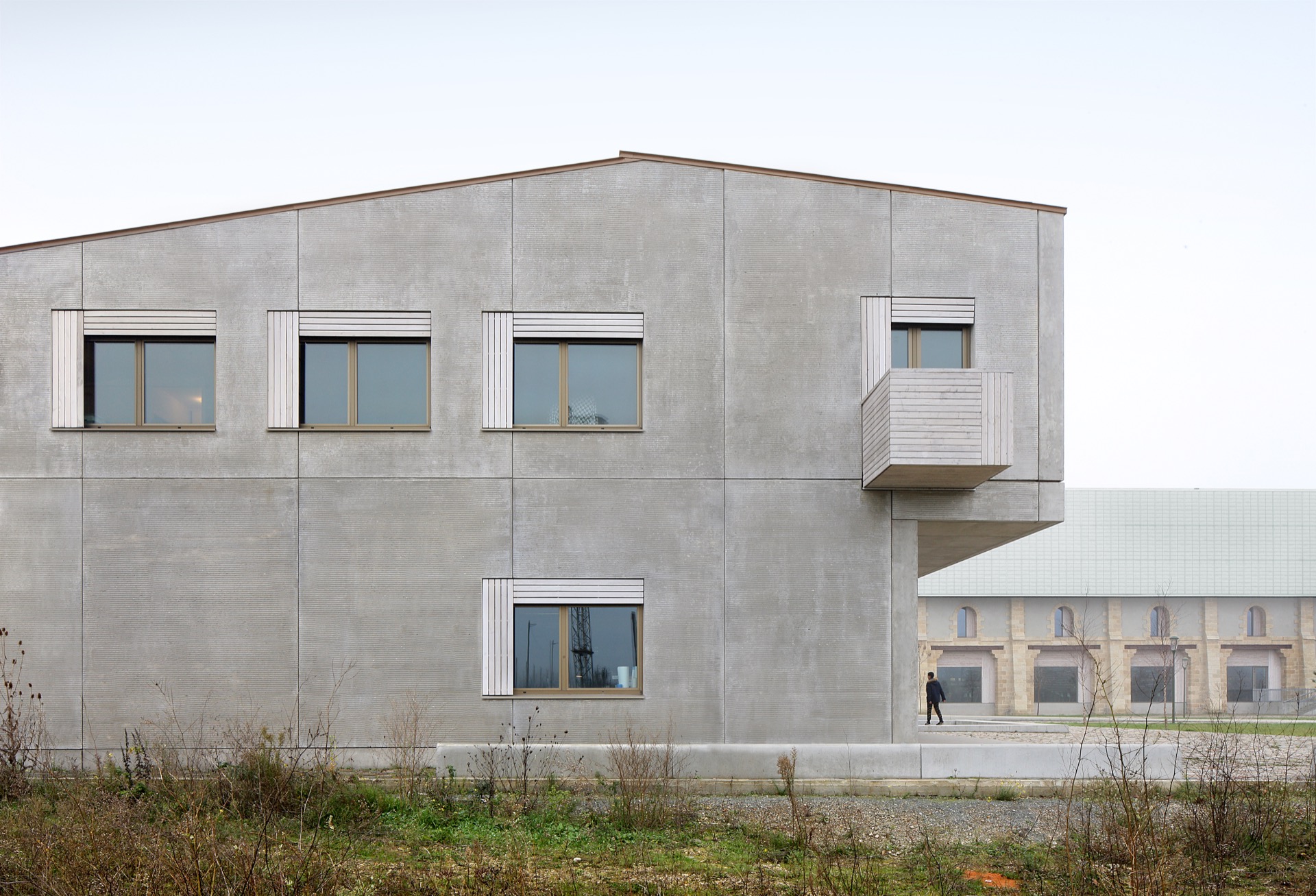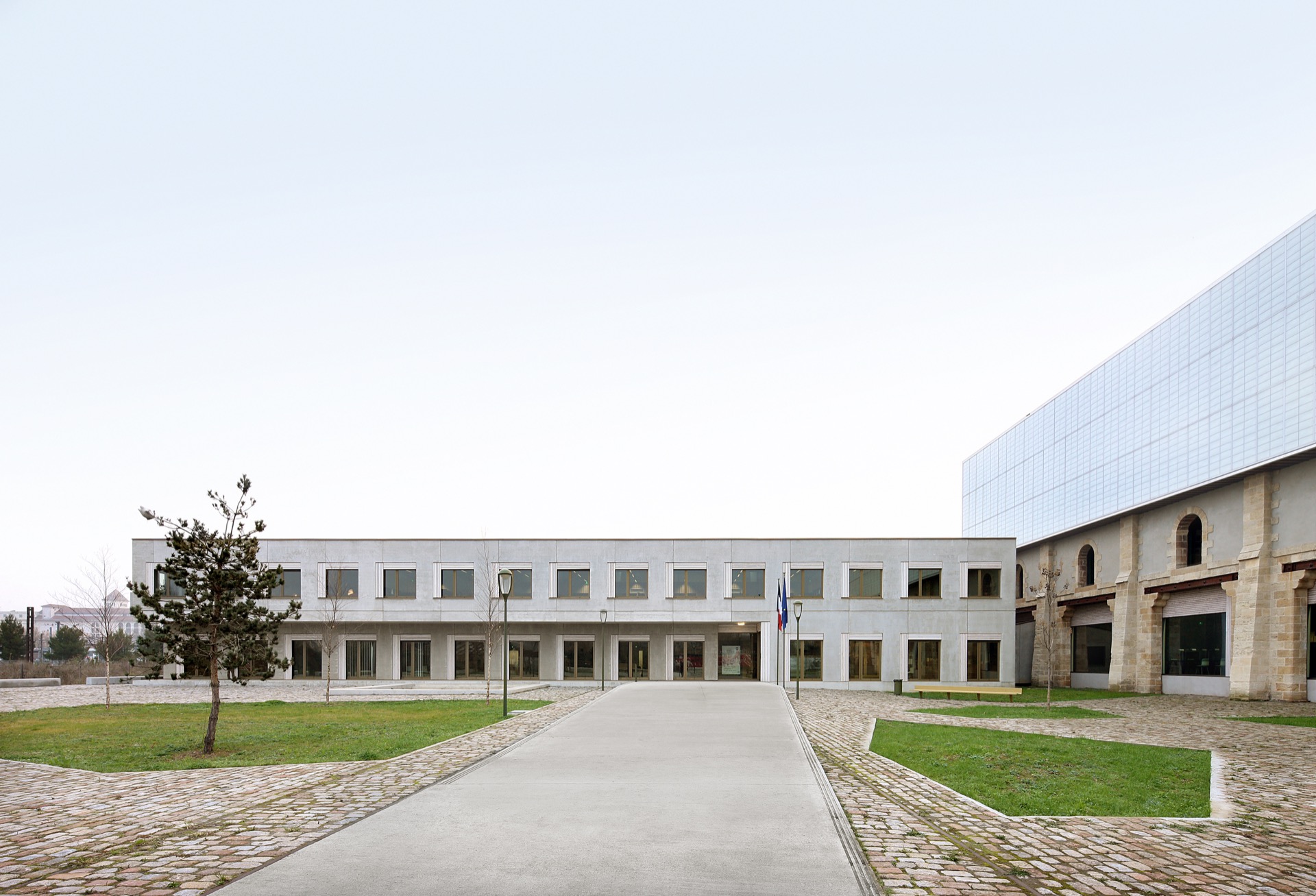 The Halles aux Farines, situated on the right bank of the Garonne, was built along with the construction of the first railway lines and is centrally situated amidst a network of tracks. The former warehouse has been transformed into the municipal archives of Bordeaux, and forms the first link with the future eco-district of Bastide-Niel. The industrial history of the site acquires a new interpretation: the storerooms, where the archive boxes are housed, are stacked in the exact location where goods were previously stacked. Each concrete box slides into cantilever above the reading room, which is located on the north side of the building, making the presence of the documents palpable. On the south side, the stepped form of the storage boxes supports the internal circulation of staff. A new perpendicular volume is created for the associated functions: reception, exhibition space, educational workshops and auditorium on the ground floor, offices and restaurant on the first floor. The reading room and the offices have a view onto a landscaped forecourt, which is accessible to everyone.
