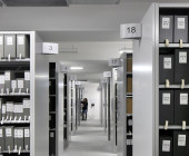 The principle of the box in a box, the low supply of fresh air and the high inertia of the concrete structure guarantee a stable climate for the archives. A ground loop field underneath the forecourt, combined with a heat pump for heating, cooling and dehumidification, allows for high-energy efficiency.
