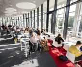 The Learning Center has retained its open-access documentary offering (around 2,300 linear meters), as well as its extended in-store collections thanks to the use of compactus (10.5 linear kilometers). Several work environments have been created for users, including a cafeteria with about 90 seats, as well as 50 group workrooms that can be booked online, not forgetting the traditional reading areas reserved for silent study. The number of workstations in the strict sense of the term has increased from 750 to 840 units.