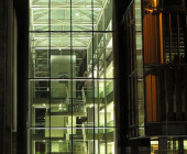The extension is based on a precast concrete grid of 6.5 metres. There is a glass twin wall system on the upper floors. The building complies with all access and safety regulations including for example the provision for a mothering room. The building has a range of green features including water attenuation tanks, seeded roof, smart lighting. A virtual fly through can be viewed at: http://www.youtube.com/watch?v=AKaiUGm6m8U