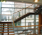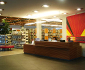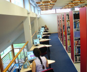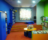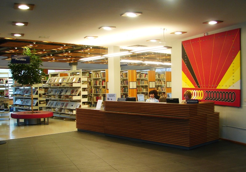 Public spaces like – open access library, reading rooms, periodical room and children book department are situated in the part of a new library building and in the part of the old buildings 1st and 2nd floor. The part of the building that is opened to the readers is created as a large single space, except the children department with fairy tale room that is located separately. Librarian offices, technical premises and book storage are located in the old library building and on the 3rd floor of the new building. All public rooms conform to environment accessibility standards.