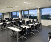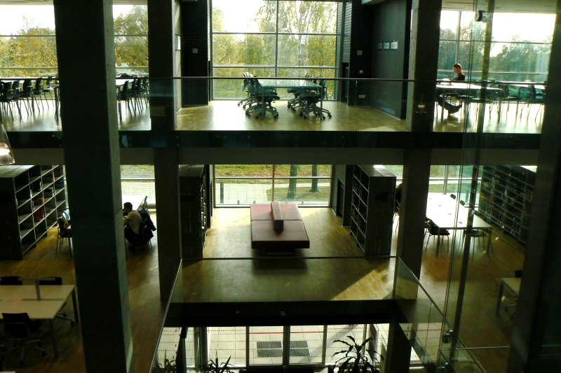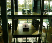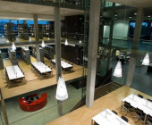Under one roof , a range of functions is available: Library holdings and periodicals, a self-checking system and security control, training, word processing, copying/printing and binding services, auditoriums for workshops and staff meetings, elevators for books transportation and for patrons, problem-based study rooms, staff room etc.