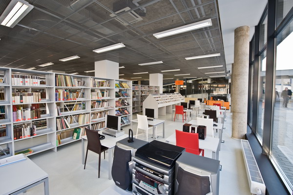 The library invites any bypassed. People may move freely through all premises, library’s collections are open and walls/partitions are transparent. It is a place designed for leisure, studies and cultural/educational events.