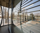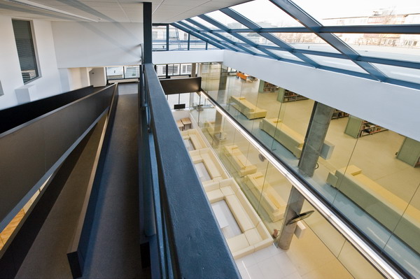The idea was to destroy existing stereotypes of a conservative library and to build an open, light and transparent library, to create the sense of freedom. Stairs were replaced by ramps in order to make the library easily accessible for everybody, including disabled people.