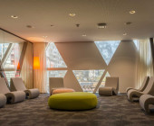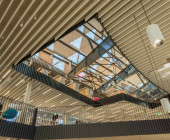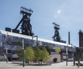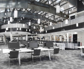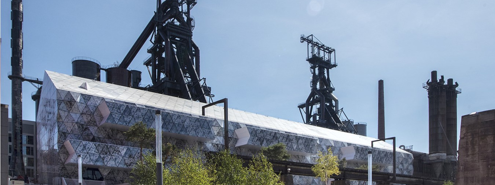 The Luxembourg Learning Centre (LLC) is a key element of the new Campus of the University of Luxembourg, located at the heart of the “City of Science” that revitalizes a former industrial site. The LLC is a new building integrated into the steel structure of an old stocking house for the steel production. The architectural design reflects the LLC’s aim to be open, innovative, and inspiring. The futuristic, partly spatial, façade composed of triangular, spotted glass elements contrasts with the two remaining blast furnaces next to the building as well with the third of the building that was left as is. The white-greyish patterns of the façade elements serve as an aesthetical design element and at the same time as a functional one that regulates the light influx into the building. The permeability of the façade is perpetuated by the design of walls and ceilings: A lot of open space allows for spectacular and surprising views. Built preliminary for the growing number of students (currently around 7,000) and staff of the University of Luxembourg, the LLC serves the Luxembourgish public as well and is open for anyone.