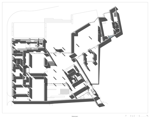 The concept behind the rest evolves from an understanding of the public and civic character of the building, whose urban role was reinforced. The design of the reading rooms and youth forum, external to the manor, establish direct morphological relations with the surroundings, thus making the architecture work in context as a closing piece which incorporates the physionomy and traces of the surroundings.
