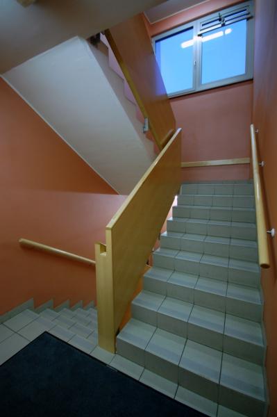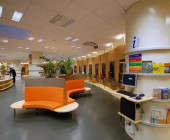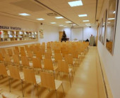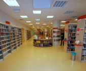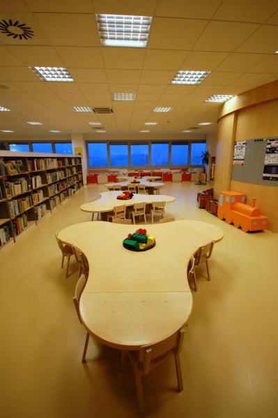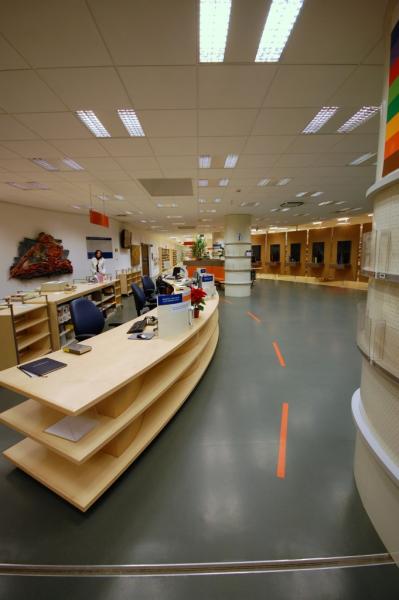 The library is easily accessible by a car or on foot, with a large parking space accessible for disabled people by escalators and elevators.