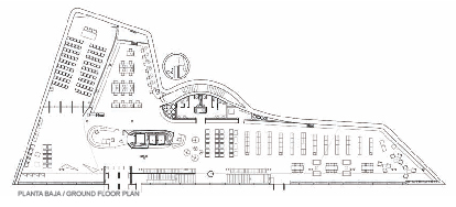This public library is the main library of Santiago de Compostela, capital city of Galicia, a region on northwestern Spain. The seven-floor building has 5809 m2 and follows a project from Spanish architect Andres Perea, whose first aim was to create a functional and comfortable building.