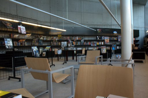 On the ground floor, the lobby shares room with the periodicals section, the exhibition room and the multi-purpose hall.