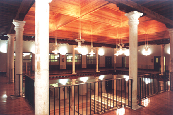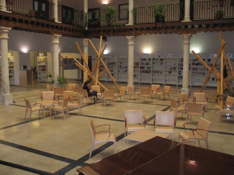 The library is located in a historical building called Palacio de los Dávalos. Former palace that belonged to a Spanish nobiliary family in the 16th century. For this reason, the current library preserve a magnificent historical coffered ceiling and a central courtyard surrounded by stone columns of the same period.