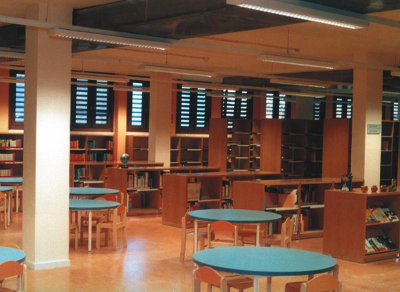 The library’s site was previously occupied by a big old family house called ”Can Salas”. From this former building, the architect has kept a stone archery, placed on the ground floor. The marble doric columns in this archery show the Italian Renaissance influence over traditional Majorcan civil architecture.