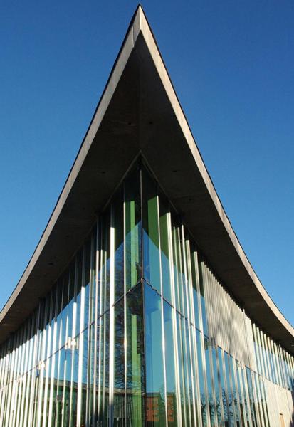 Halmstad City Library is situated in the central of the city near the beach of the river Nissan. The shape of the building is unique and the architects were inspired from the trees still standing on the site.