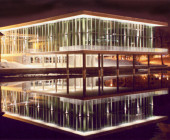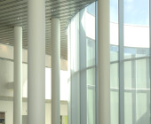 The entrance is designed to engender a feeling of dynamism, movement and activity. The entrance floor accommodates Cafeteria, Reception, News section, Children’s section, Fiction section, and The City Gallery. The upper floor holds the Non-fiction section, Europe Direct office and Local History Centre. The lower floor contains of the Auditorium, the Stockroom, the Open stockroom and three study rooms.