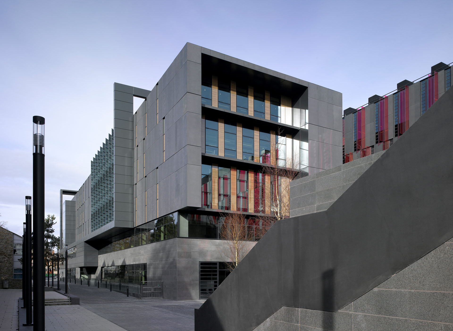 The building is located on the University’s main Headington campus. The north elevation overlooks the main entrance and piazza while the west elevation overlooks adjacent parkland.